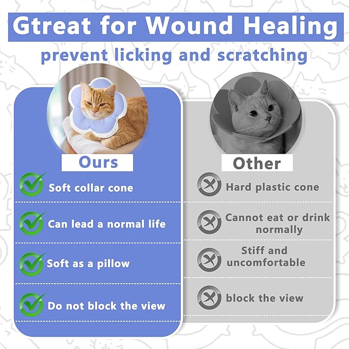 - Aids in wound recovery: Maalgic soft cone for cats/cute kitten e-collar can prevent kittens from licking their wounds, and the waterproof material keeps the pet's wounds dry, promoting better healing. It is also suitable for postoperative recovery, veterinary examination, beauty and nail trimming, etc. Please note that, confirm the position of the wound, for the lower wounds, consider a larger size.