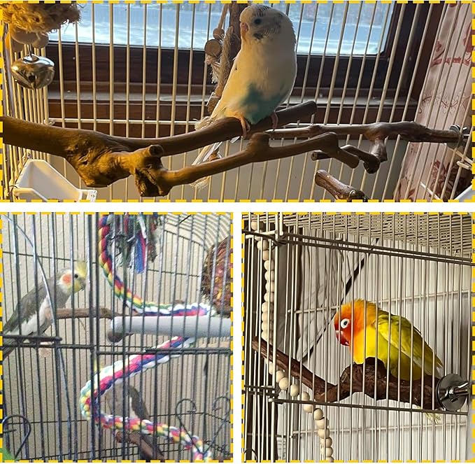 - Easy to Install:Every bird cage branch is equipped with a metal wing nut and built-in bolts.You can easily attach or removal to any cage with screws that lovebird cage perch can be securely fixed