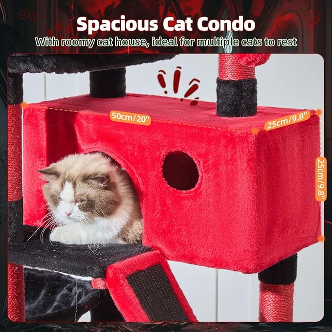 Taoqimiao Gothic Cat Tree 57.5-Inch, Cat Tower for Indoor Cats Large Adult, Extra Large Cat Condo, 8 Sisal Scratching Posts, Metal Frame Cozy Hammock, Durable Scratch Board, 2 Top Perches, MS026BR