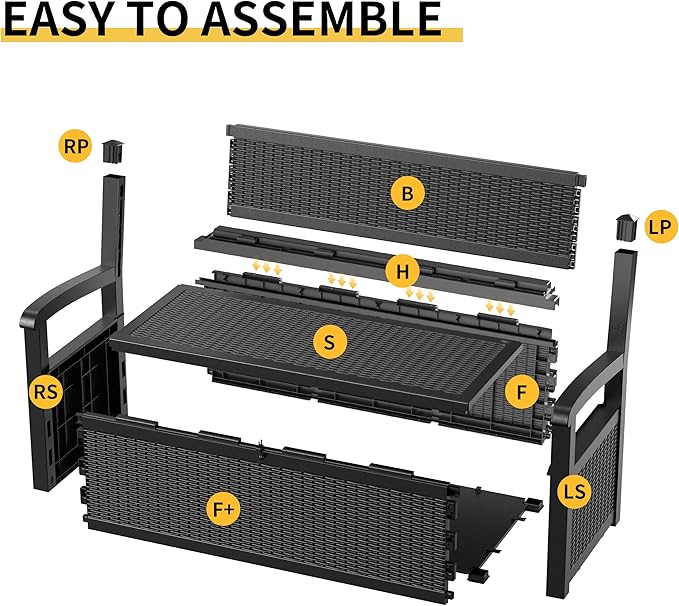 - WATERPROOF AND FADE PROOF : Crafted from high-quality, eco-friendly resin, the EasyUp storage bench is designed to be waterproof and UV-resistant, ensuring excellent durability. It withstands harsh sun and rain, maintaining its original appearance and strength in any season, making your outdoor life easier and worry-free.