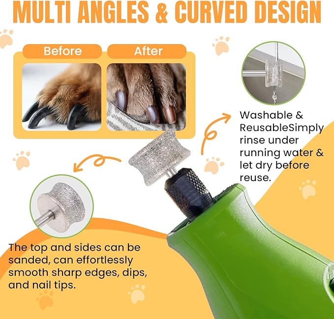 - [Quiet & Vibration-Reduced for Pet Comfort] Engineered for low noise and minimal vibration, our pet nail grinder attachment helps reduce pet anxiety and makes grooming safer and more relaxing—for both you and your furry friend