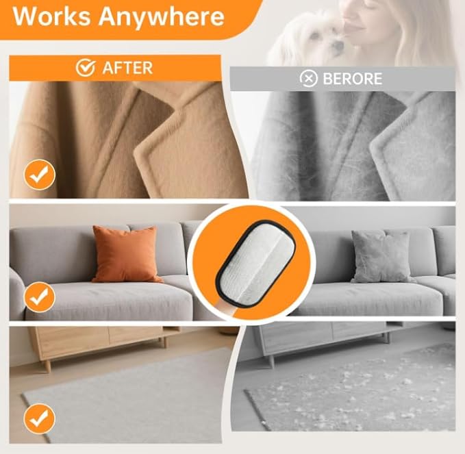 - Versatile Use: Works on all fabric surfaces—clothes, furniture, and car seats Comfortable Fit: Soft material keeps hands comfortable even during prolonged use