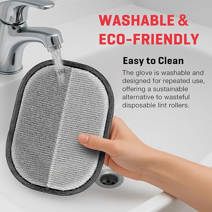 - Eco-Friendly & Reusable -- Say goodbye to wasteful sticky sheets ant lint roller! These pet hair removal gloves are washable and reusable, making them a sustainable choice that saves you money and reduces environmental impact. and Cleanup is a breezeโjust rinse it with water or toss it in the washer after a thorough session. No hassle, no fuss!