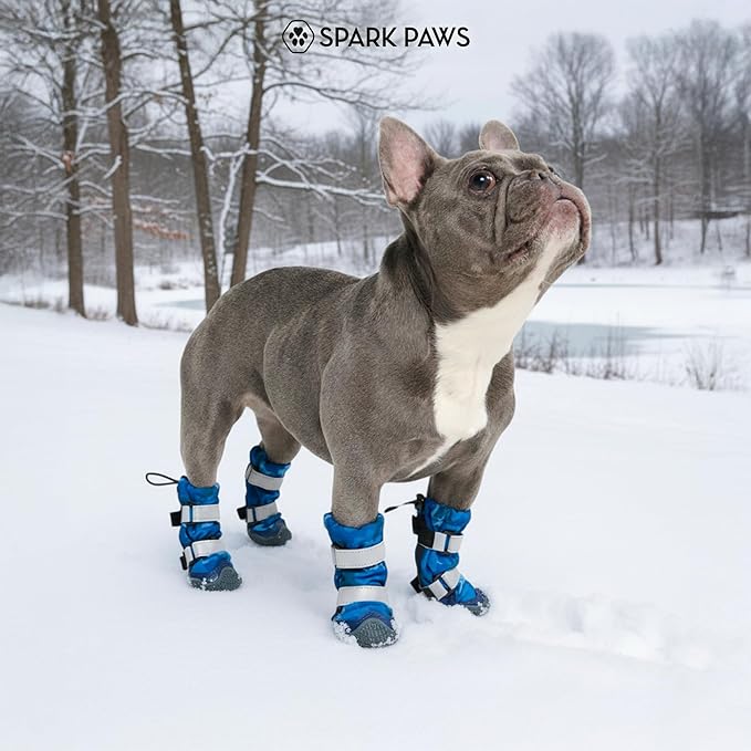 Spark Paws Dog Shoes, Waterproof Dog Boots for Medium to Large Dogs, Non Slip, Breathable Dog Booties and Paw Protectors - 4PCS Doggie Hiking Boots with Reflective Straps, Blue Camo, Size 4