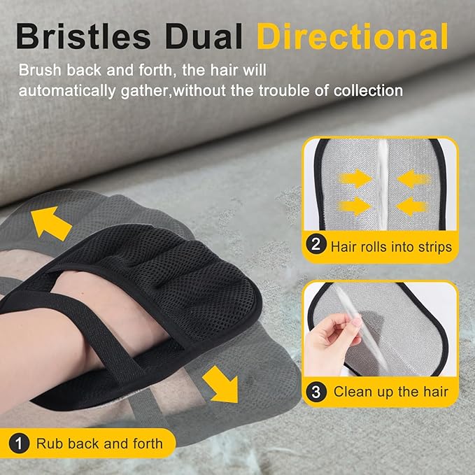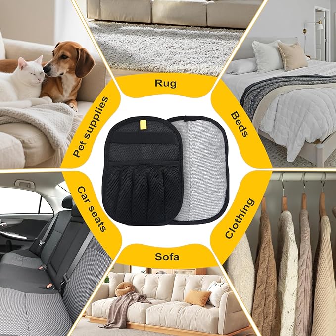 - Effortless Pet Hair Removal – Five-finger electrostatic glove lifts dog & cat hair from couches, carpets, car seats with simple left-to-right strokes—no sticky refills needed.