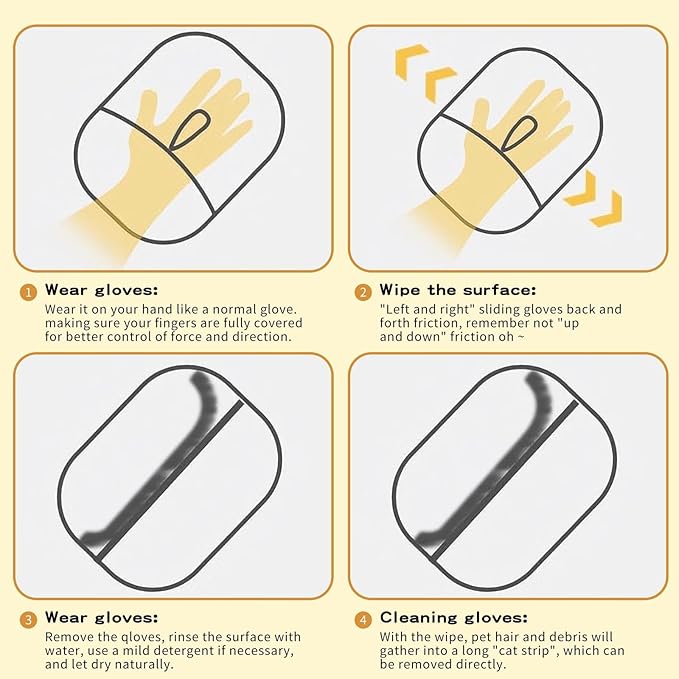 - 【Pet Hair Removal Glove 】The Pet Hair Removal Glove uses static electricity and a unique design to effortlessly collect pet fur. this glove is easy to use and highly effective at removing pet hair from clothes, furniture, and more