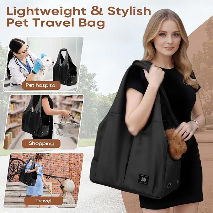 - Lightweight & Portable: Our Dog Purse Carrier weighs only 1 lb, foldable for easy storage and portability. The lightweight design ensures comfort during extended wear. Perfect for pet travel, veterinarian visits, or daily walks. The single shoulder strap frees your hands for easier outings