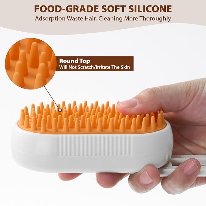 - 【USER & PET FRIENDLY】Cat brushes 360° rotatable handle and anti-slip teeth design provide a stable and comfortable grip. The brush head can be easily removed and rinsed under running water. In addition, cat brush with steam low-noise operation can avoid scaring your pets.