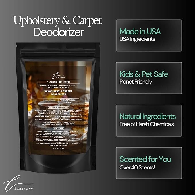 Almond Biscotti Carpet Freshener Powder: Powerful Odor Eliminator for Home, Upholstery Deodorizer, Carpet Deodorizer, Pet Urine, Cat Litter Box - Nutmeg & Spice Fragrance