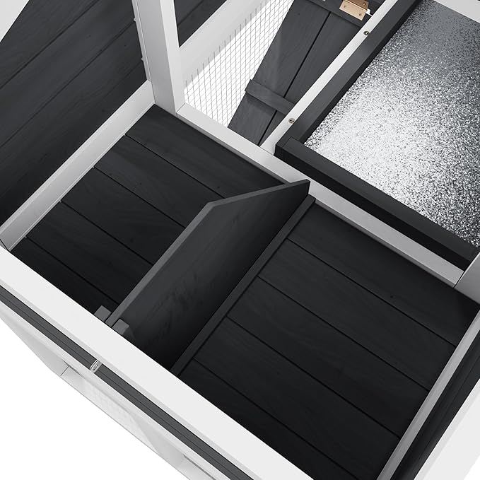 - 4. 【Easy-Clean Design - Superior to Standard Chicken Cages】 Features a 1.8" deep removable tray (deeper than most chicken pens) with leak-proof plastic surface. The openable roof provides full cleaning access - more convenient than traditional chicken coop designs. Perfect for hassle-free maintenance whether used for rabbits or adapted for poultry needs.